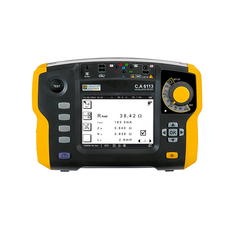 As well as being feature-rich and safe, the Chauvin Arnoux CA 6113 is also very practical. Weighing just 2.2kg, it can hang comfortably on the supplied neck strap for easy, hands-free use. This installation tester even offers contextual help screens for certain measurements to help guide both inexperienced and expert users.