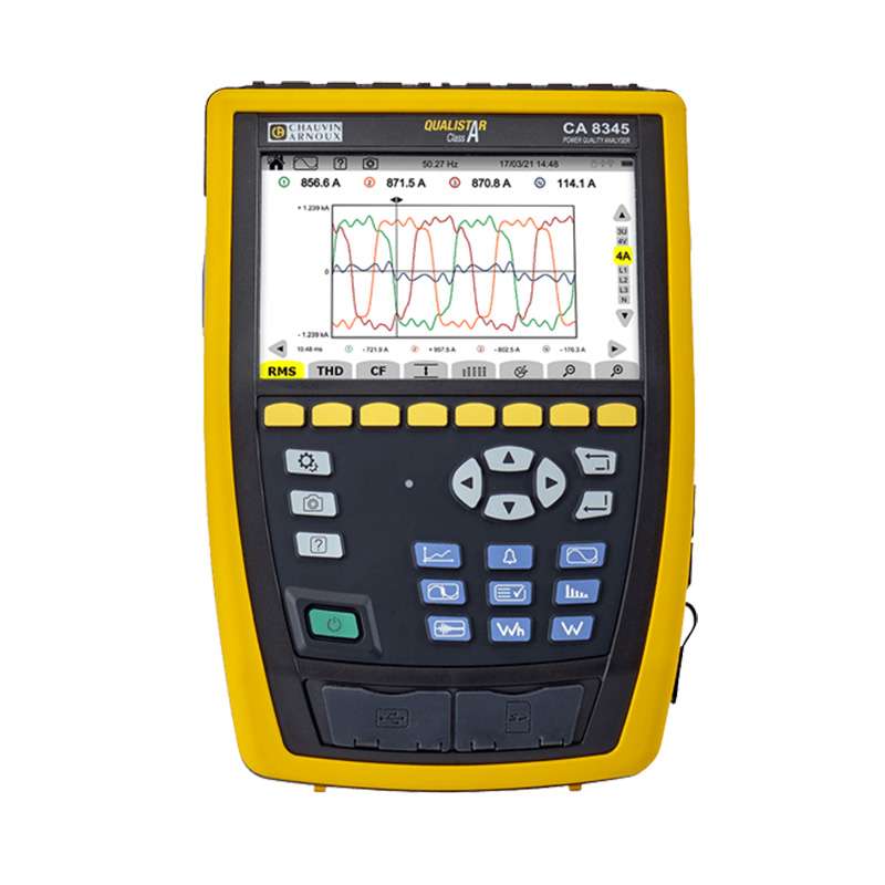 The Chauvin Arnoux CA 8345 is a high-precision Class A power analyzer designed to offer detailed insights into the quality and performance of electrical networks. Tailored for industrial and commercial plant testing and maintenance, the CA 8345 provides immediate, accurate readings of crucial electrical parameters. It is capable of automatically recognizing the type of current sensor connected and offers a user-friendly interface with a large LCD touchscreen display for easy navigation.