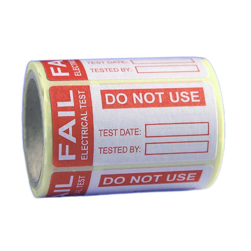 ⚡ Roll of 100 FAIL paper PAT test labels, 60 x 30mm.