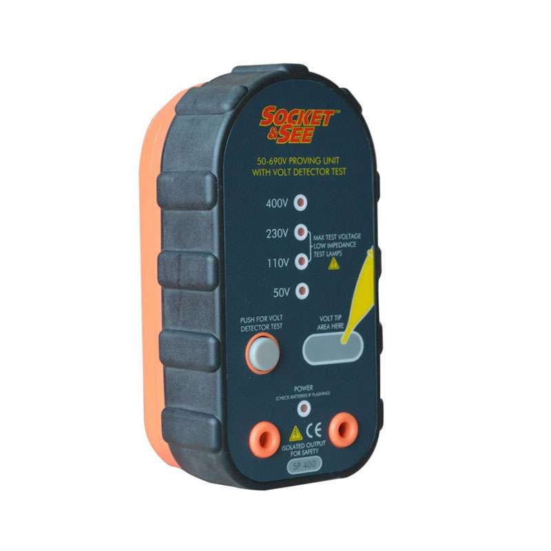 The SP400 Proving Unit is an essential tool for electricians, providing a safe and reliable method to verify the proper functioning of multimeters and two-pole Voltage Indicators (VIs) before and after use. Designed in accordance with best practices, this battery-powered unit ensures that your testing equipment is functioning correctly, enhancing safety during electrical work. The SP400 also has the capability to test non-contact voltage detectors, making it a versatile addition to any electrician’s toolkit. With its unique and logical safety features, the unit generates a test voltage at 50Hz, simulating genuine AC mains supply frequency, ensuring accurate readings on your tester or multimeter.
