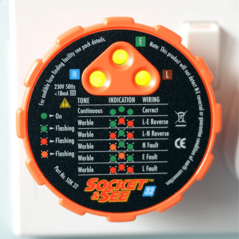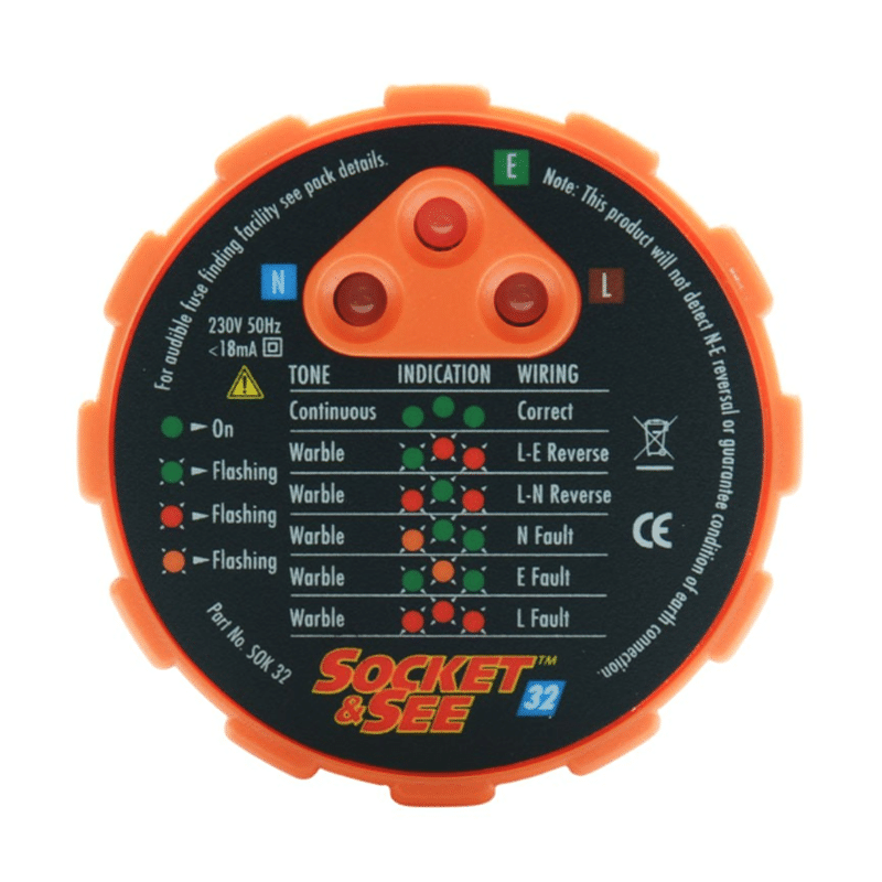 The Socket & See SOK32 Professional Socket Tester is a state-of-the-art tool specifically designed to streamline the process of mains wiring testing. With its advanced technology, this device offers accurate and immediate feedback on the condition of electrical sockets, making it an essential instrument for electricians, maintenance personnel, and DIY enthusiasts. The SOK32 not only simplifies fault detection but also enhances safety and compliance with electrical standards.