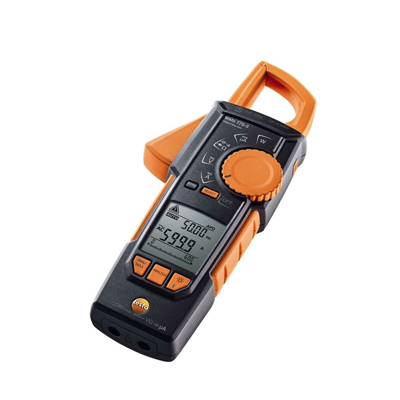 - Testo 770-3 clamp meter with TRMS measurement for accurate current, voltage, resistance, and power readings